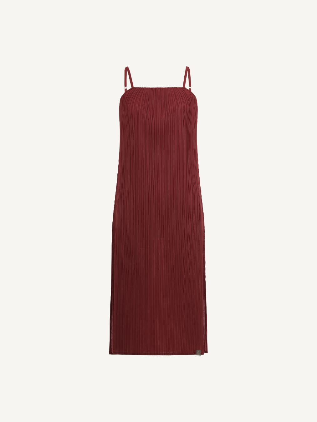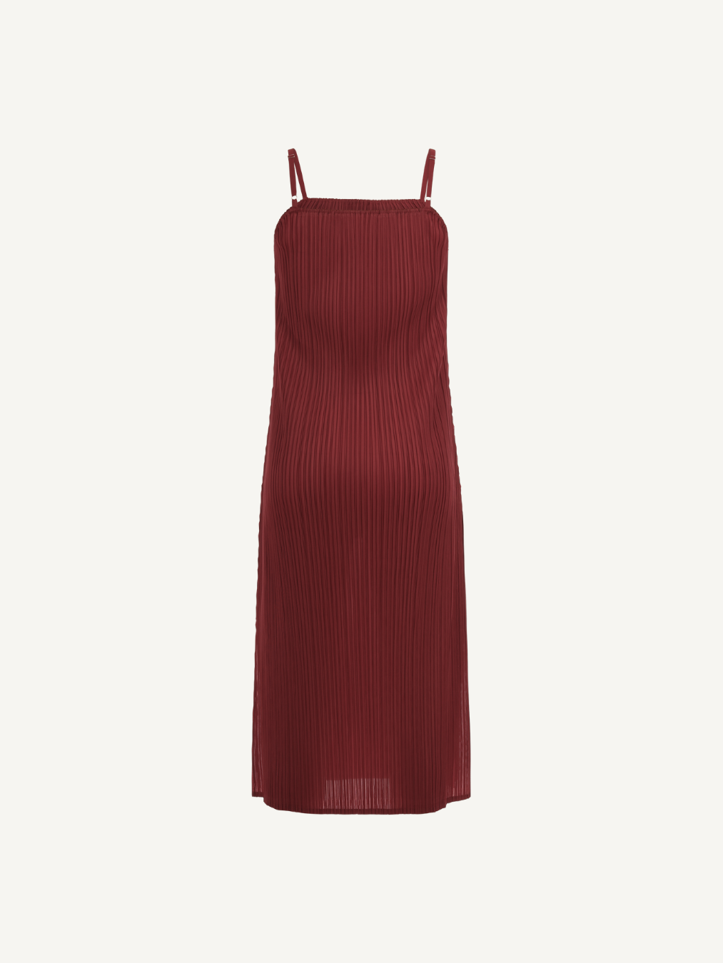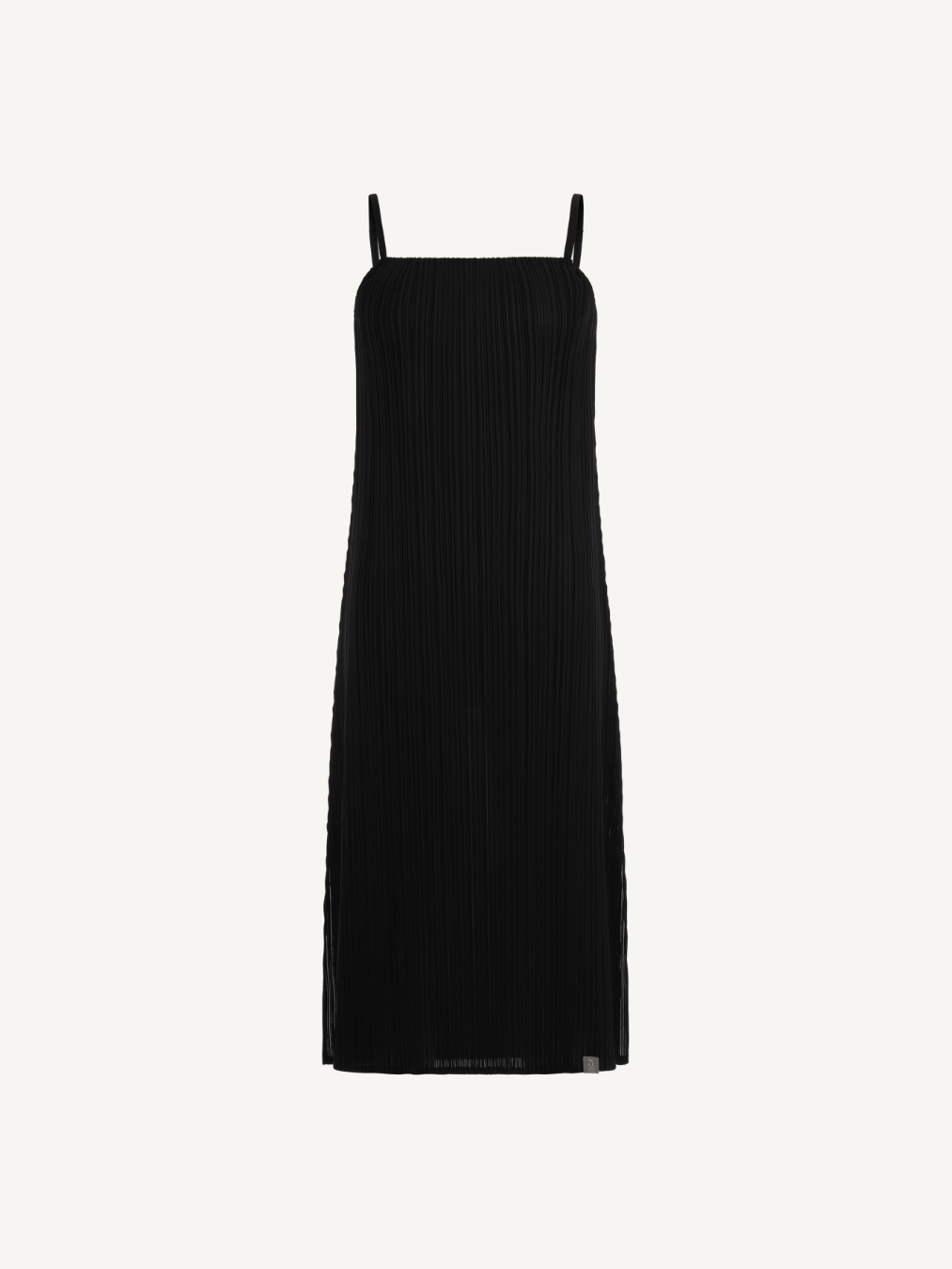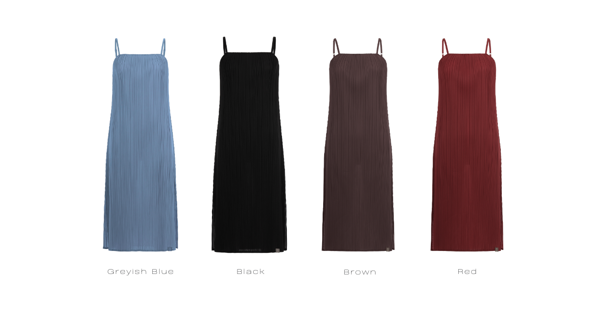 “Sleek-line dress where minimalist design meets delicate strap details for a refined, effortless look.”