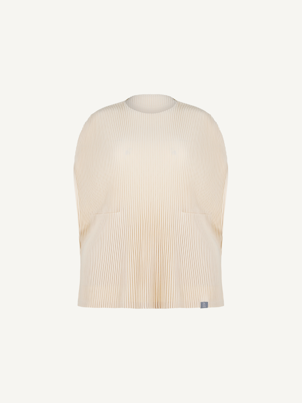 “Cover-up top defined by a soft, voluminous egg-shape silhouette that feels both gentle and refined.”