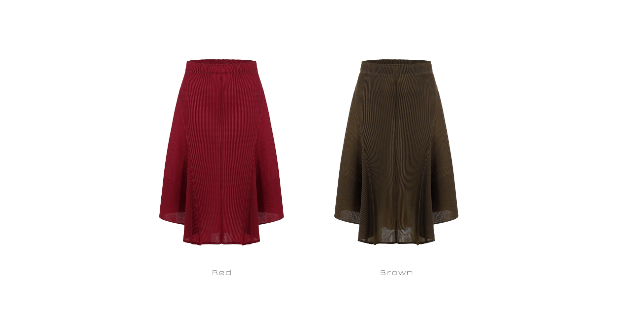 “Midi skirt that gracefully flares, combining 5threethree’s signature Kan-Kan silhouette with the delicate texture of Spaghetti pleats.”