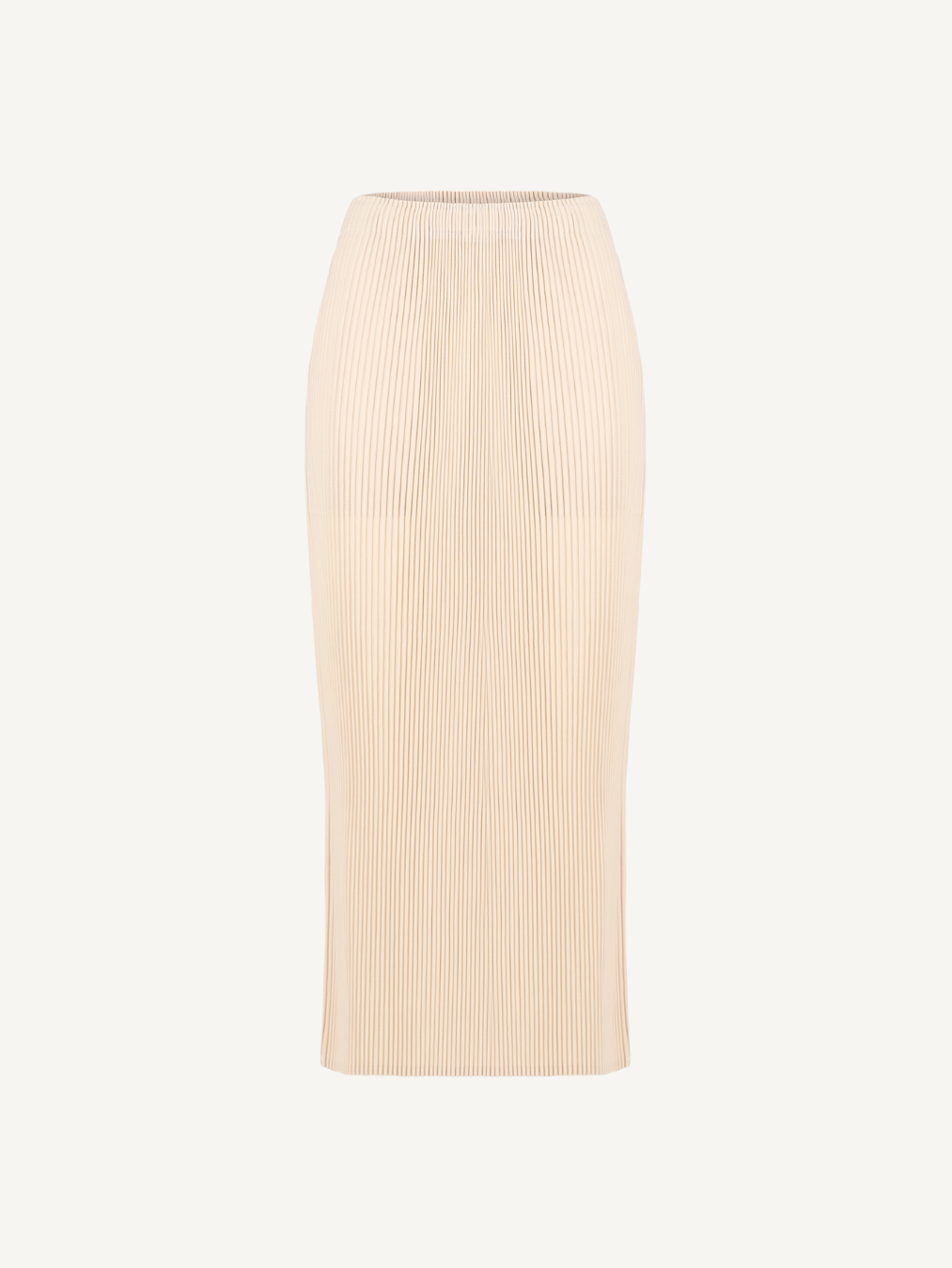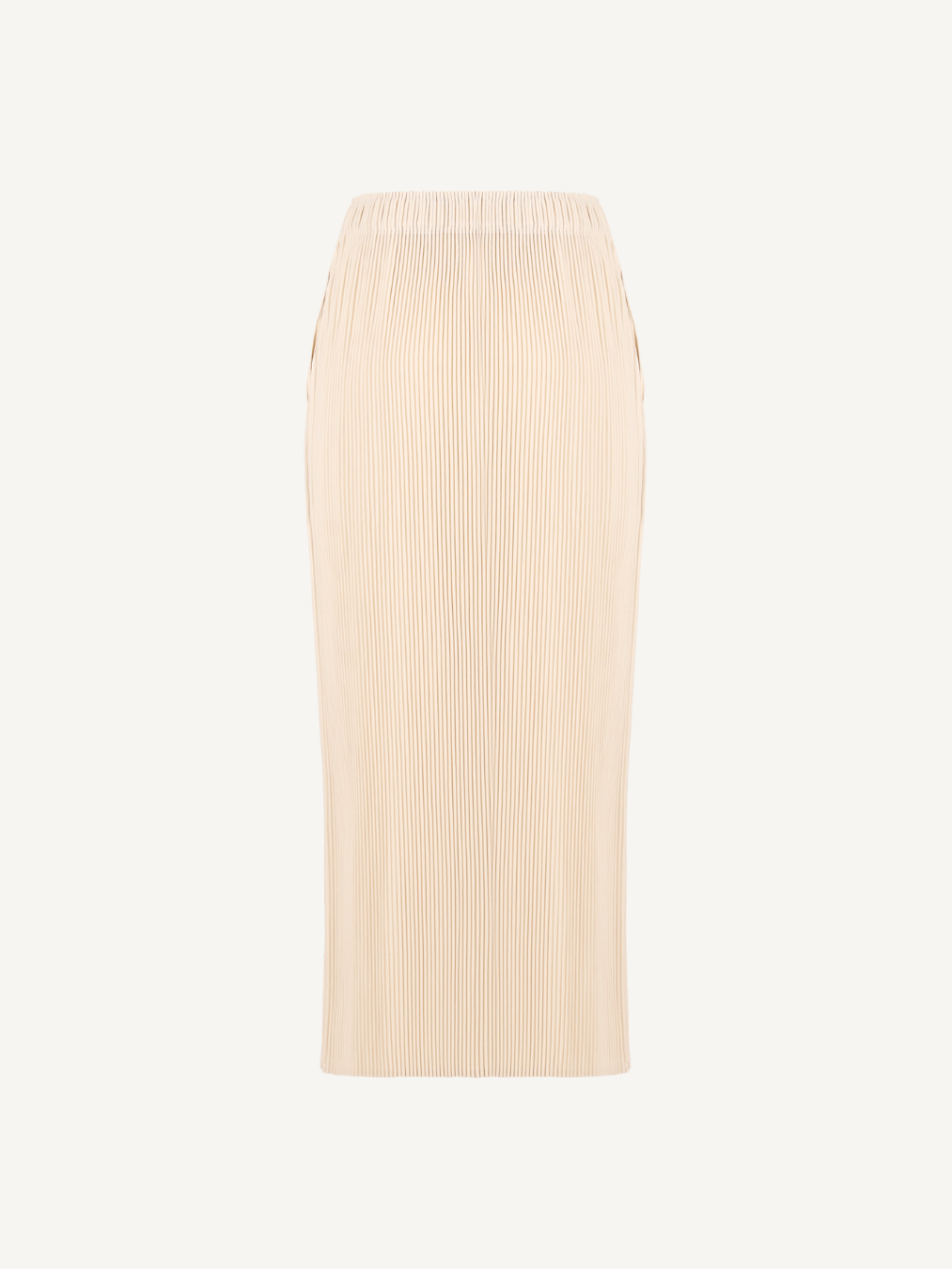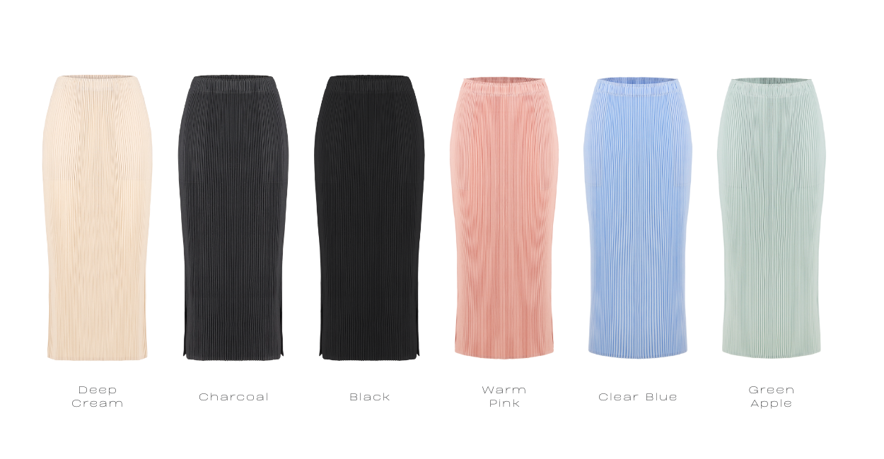 “Pleated skirt with a clean H-line silhouette, designed to create a calm yet refined mood.”