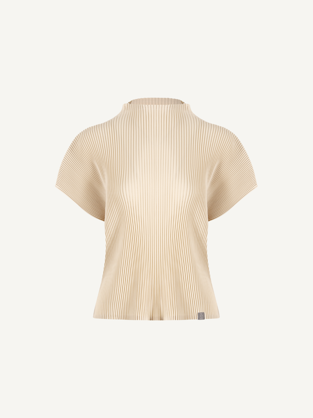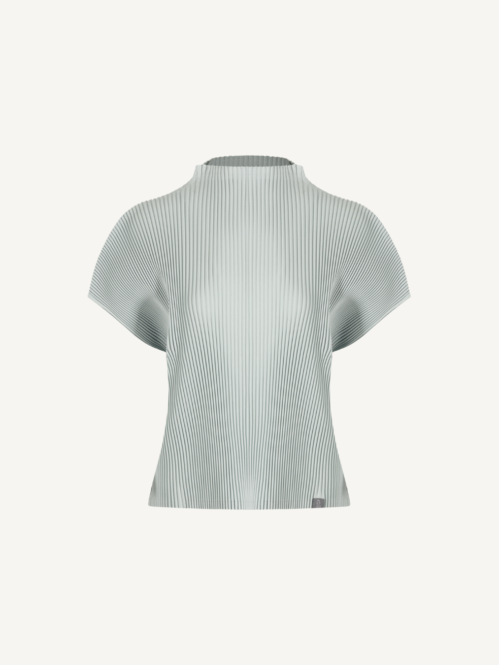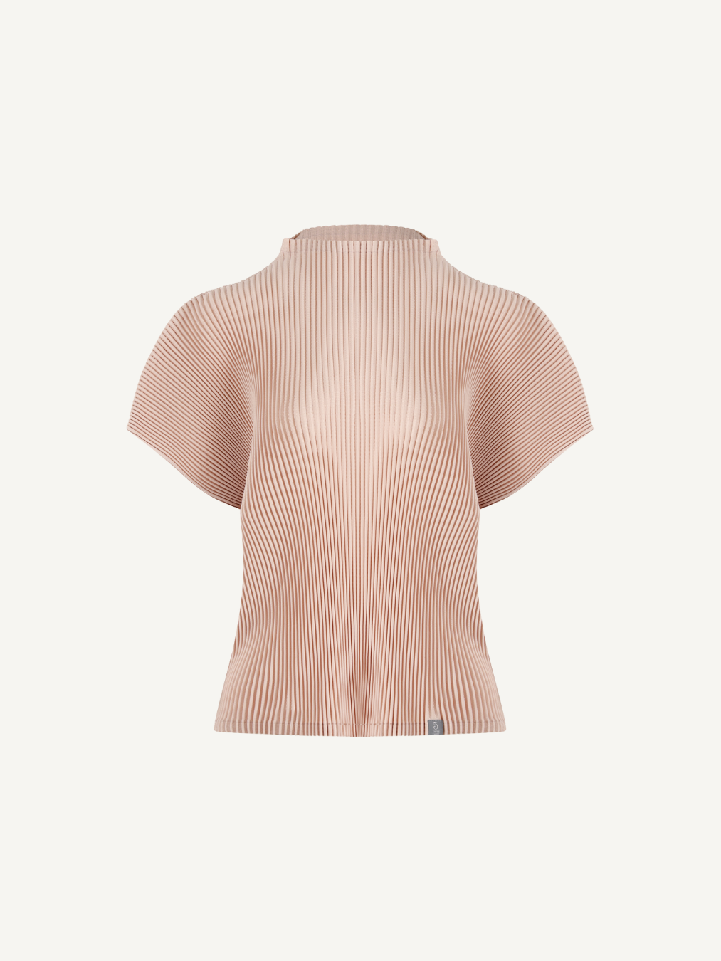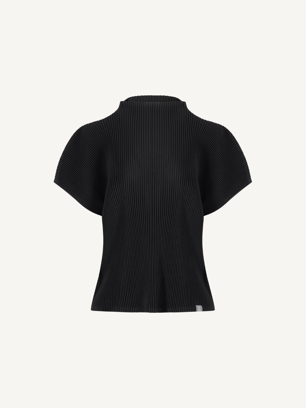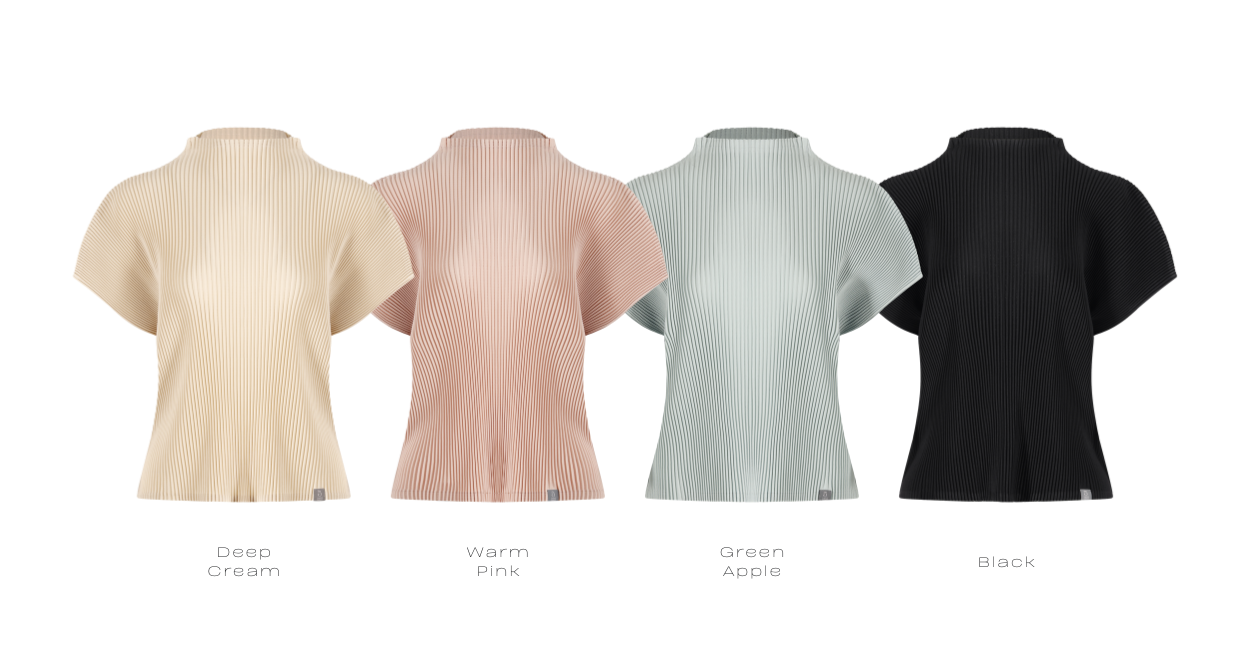 “Pleated top defined by a comfortable mock-neck line and soft draping, designed to blend effortlessly into both standalone and layered styling.”