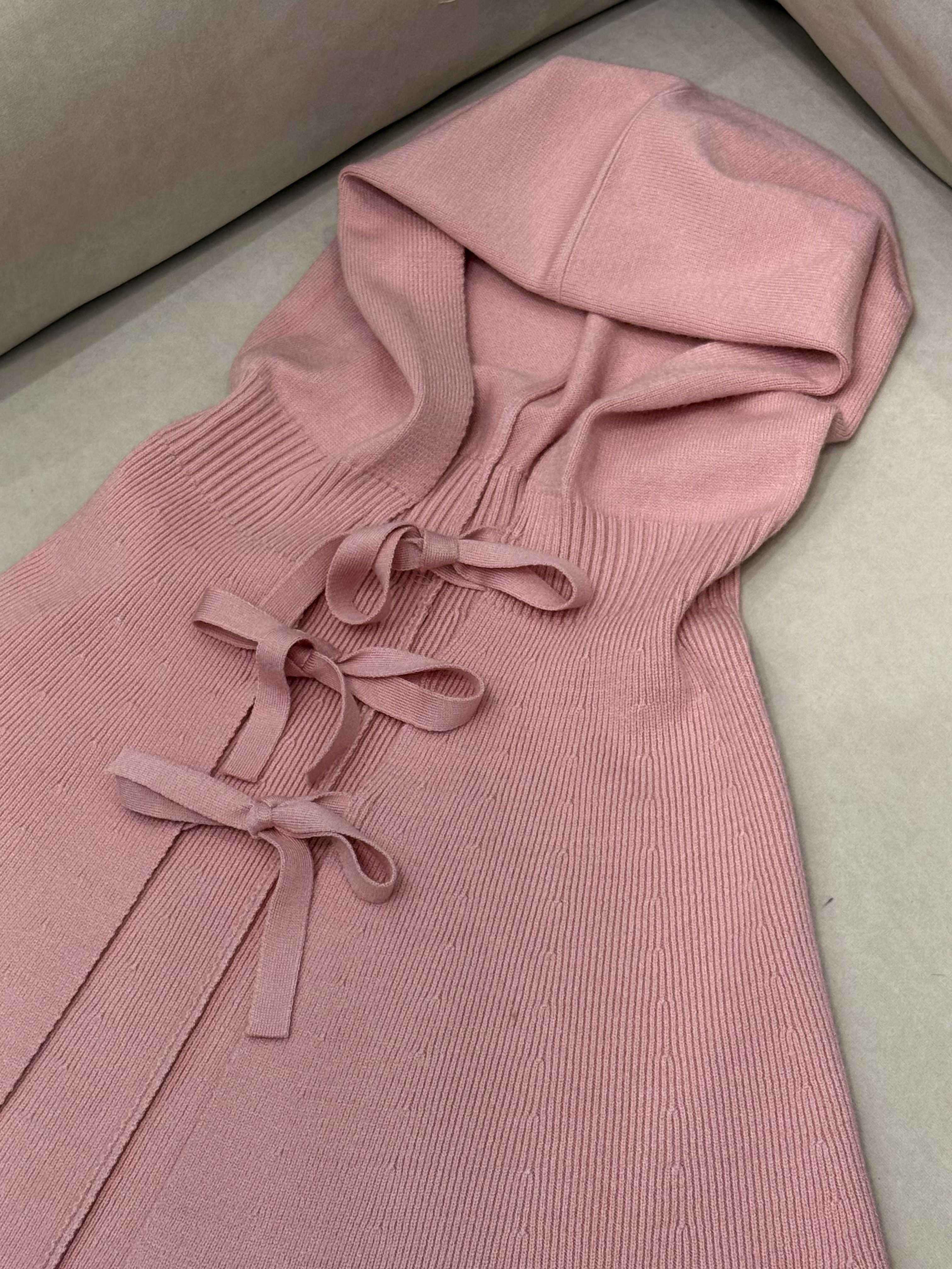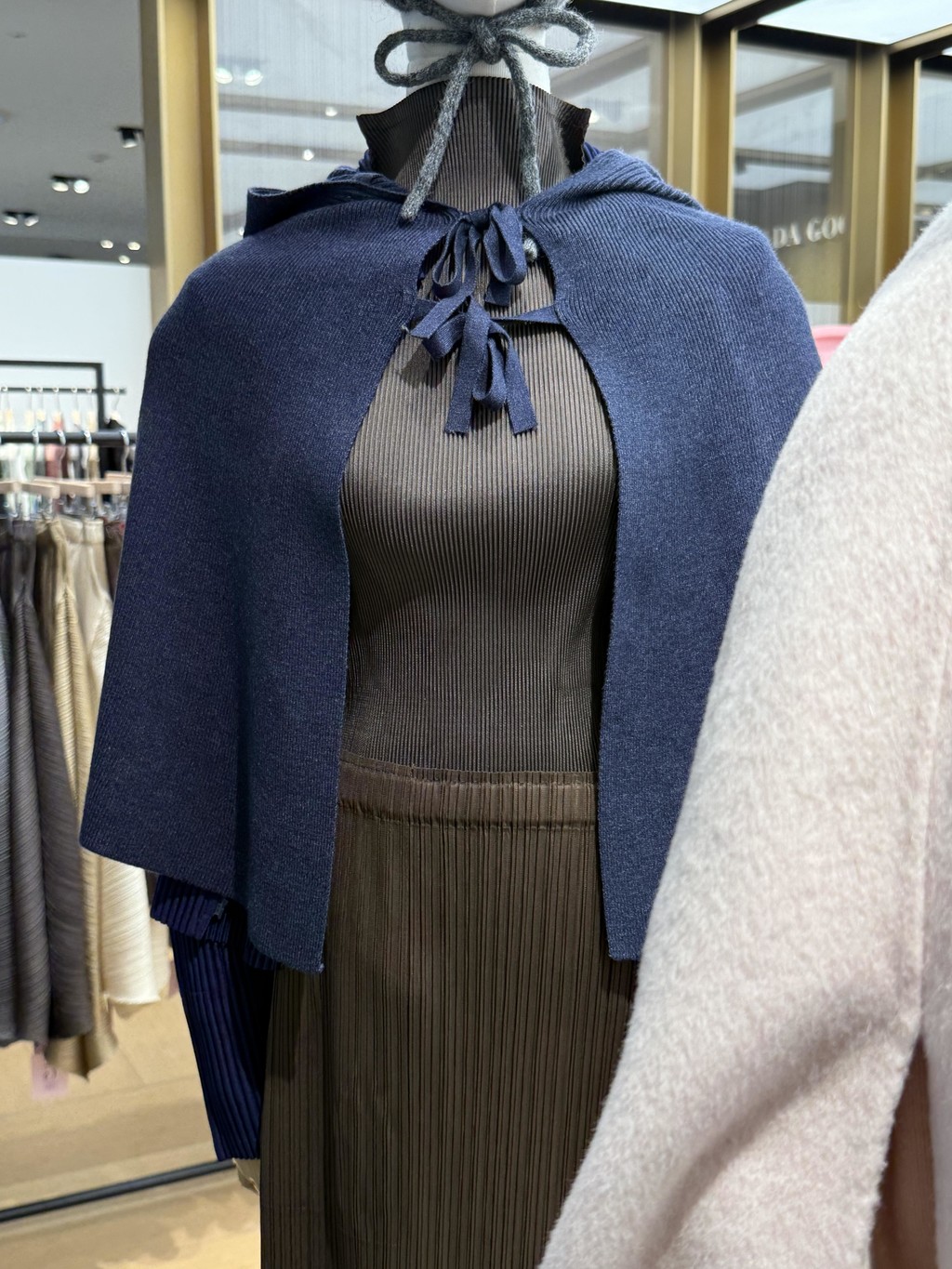 Ribbon Hood Knit Cape