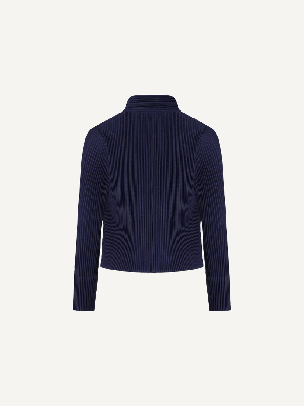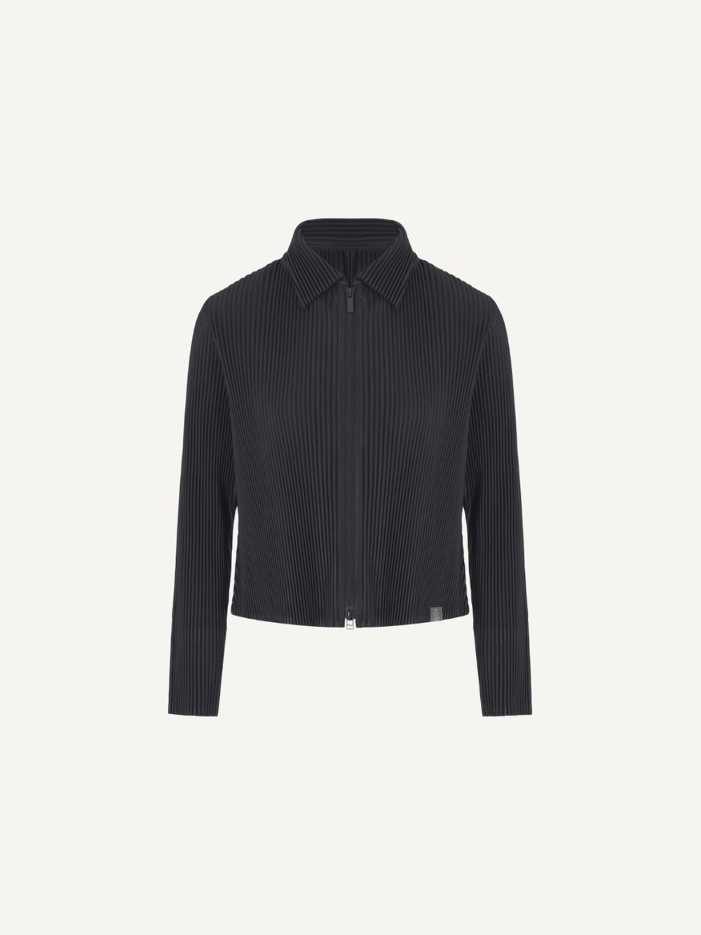 “Zip-up jacket with a clean straight silhouette, finished with a cropped length for a refined yet modern look.”