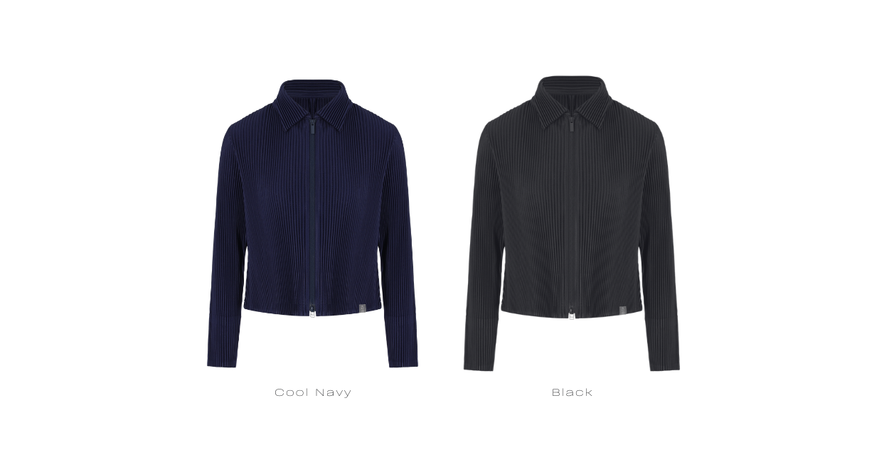 - Classic collar and front two-way zipper detail, allowing for versatile styling options