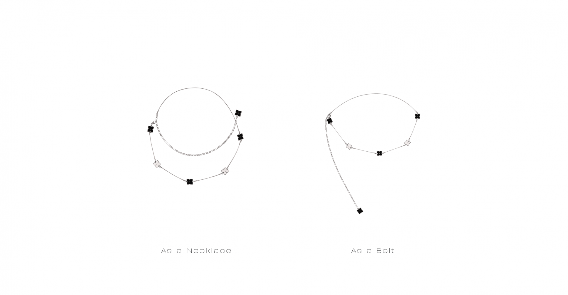 - 2-way design that can be worn as both a necklace and a chain belt