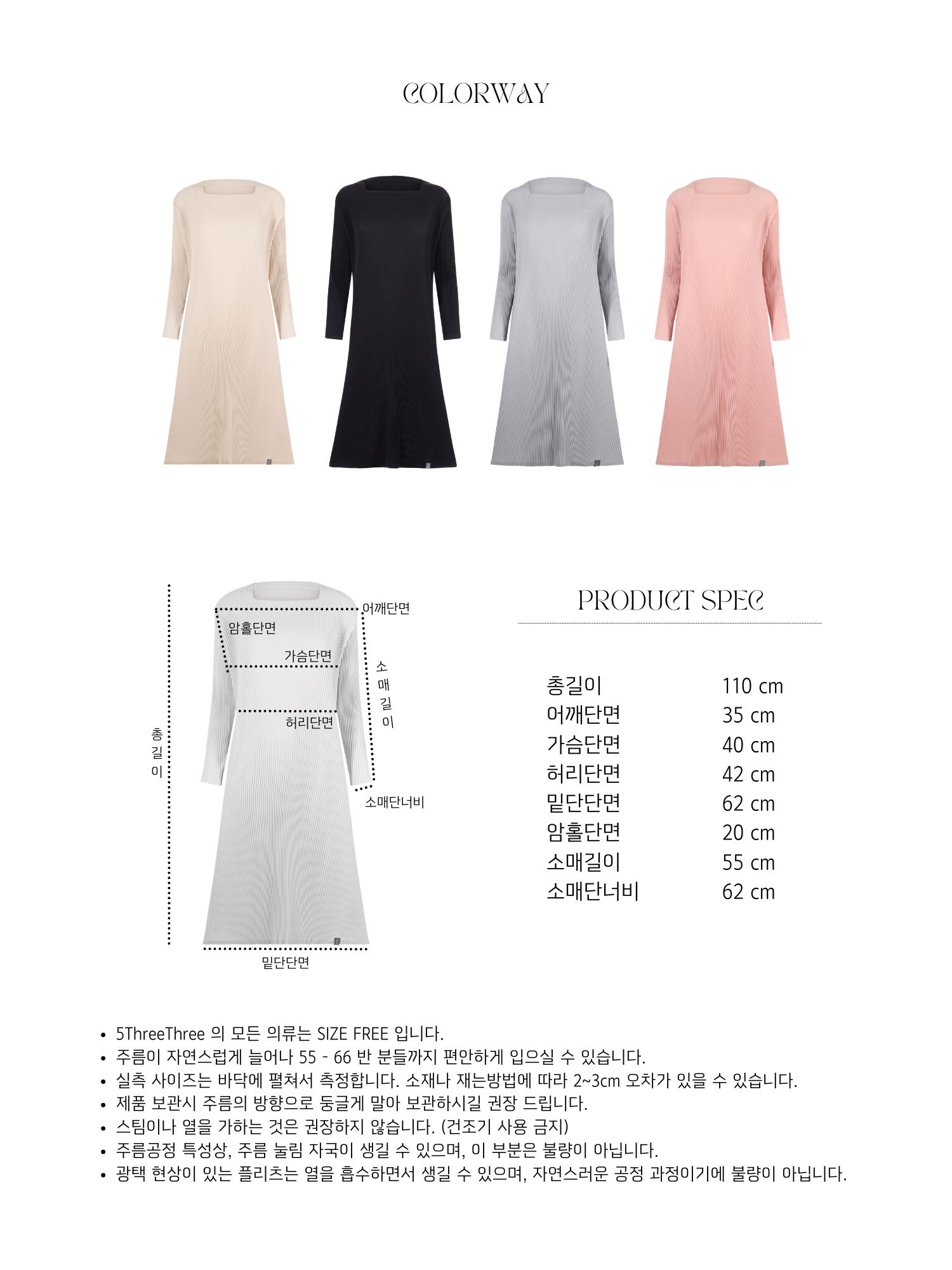 입으시면 그야말로 과하지 않은 사랑스러운 포인트 아이템이 될 거라 생각됩니다. 5threethree Day Dress 의 핑크 컬러는 차분하지만 look에 충분히 고급스럽게 은은한 포인트가 되는 컬러입니다.