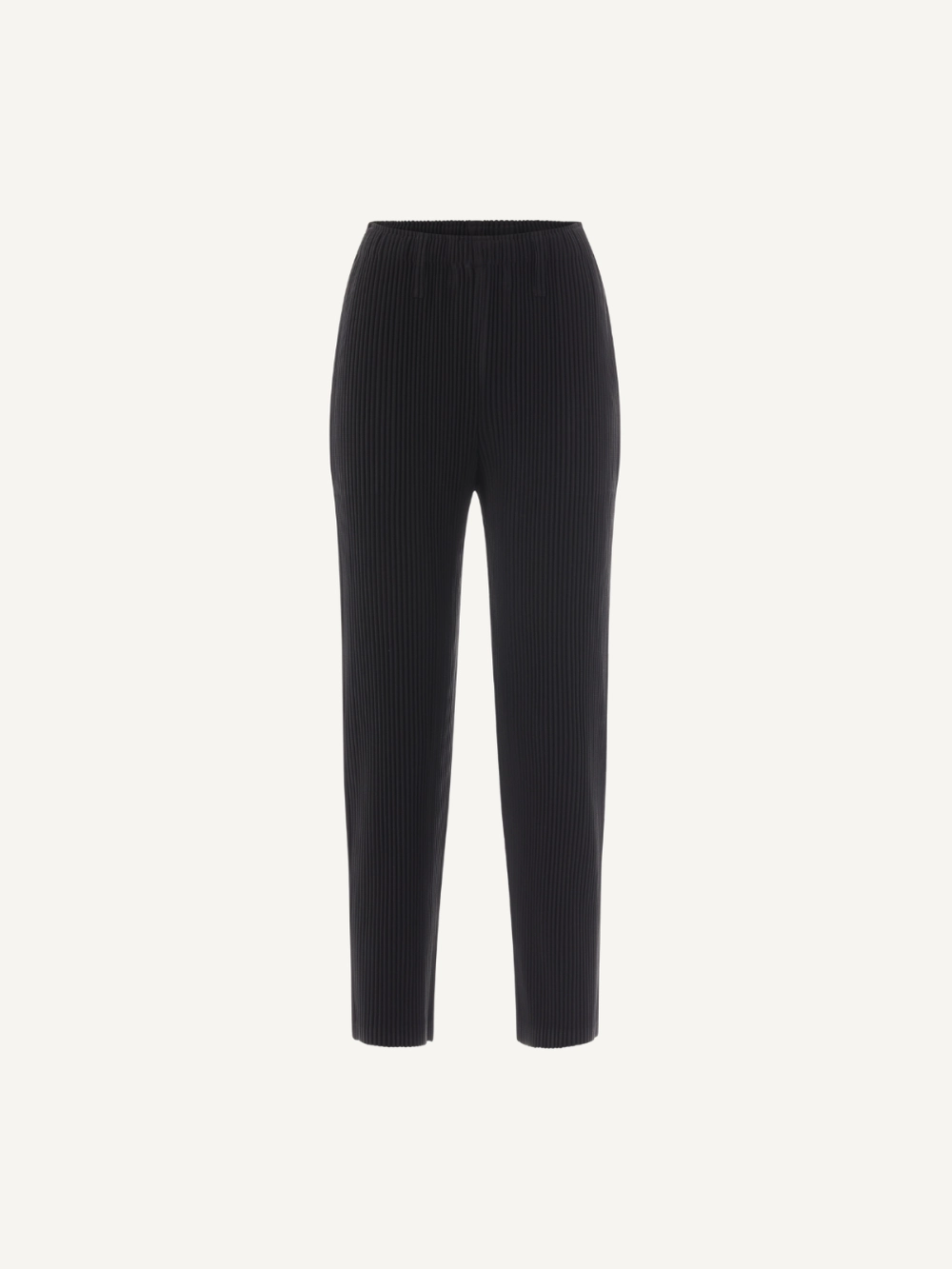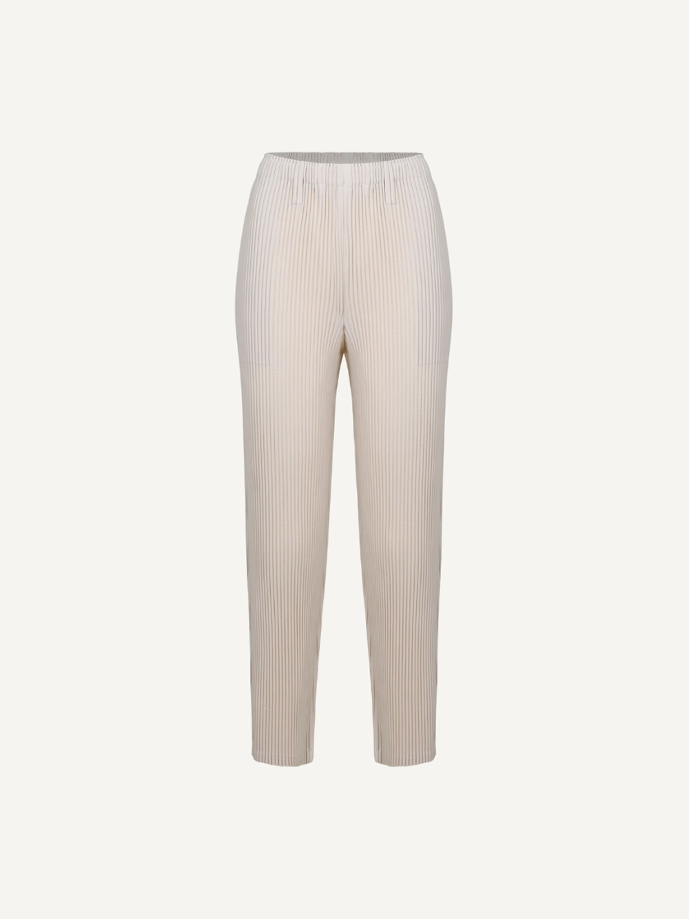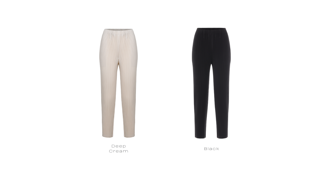 “깔끔하고 단정한 디자인의 팬츠로, 과하지 않은 테이퍼드 핏과 링귀니 플리츠 디자인이 세련된 실루엣을 완성해줍니다.”