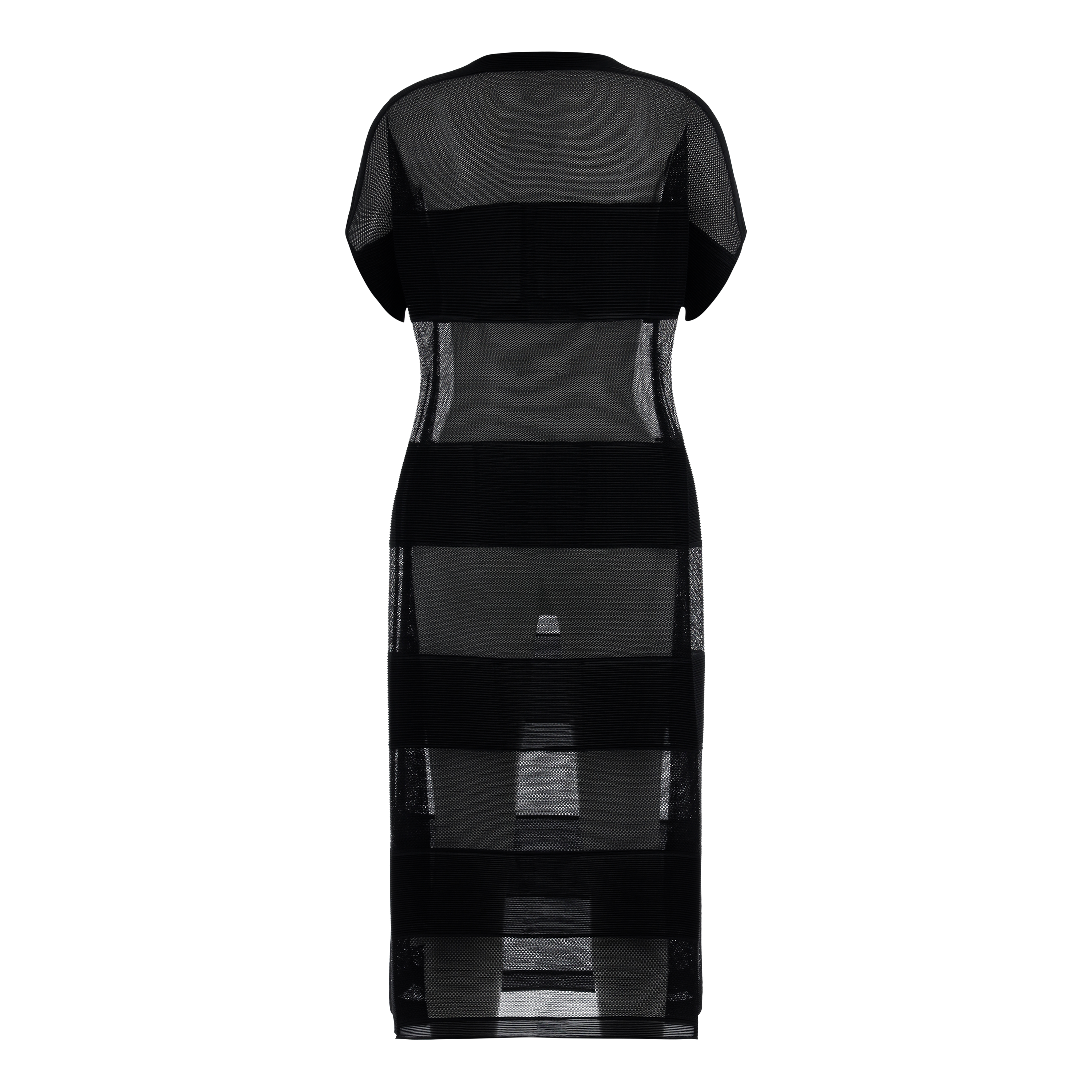메시 부분과 교차로 스트라이프 디자인을 구현하였으며, 민소매부터 긴팔까지 어떠한 제품을 안에 레이어드해서 입을 수 있습니다. 이너로 어떠한 제품을 입었느냐에 따라 스타일링 변화를 줄 수 있으며, 단독 피스만으로도 특별한 느낌이 있습니다.