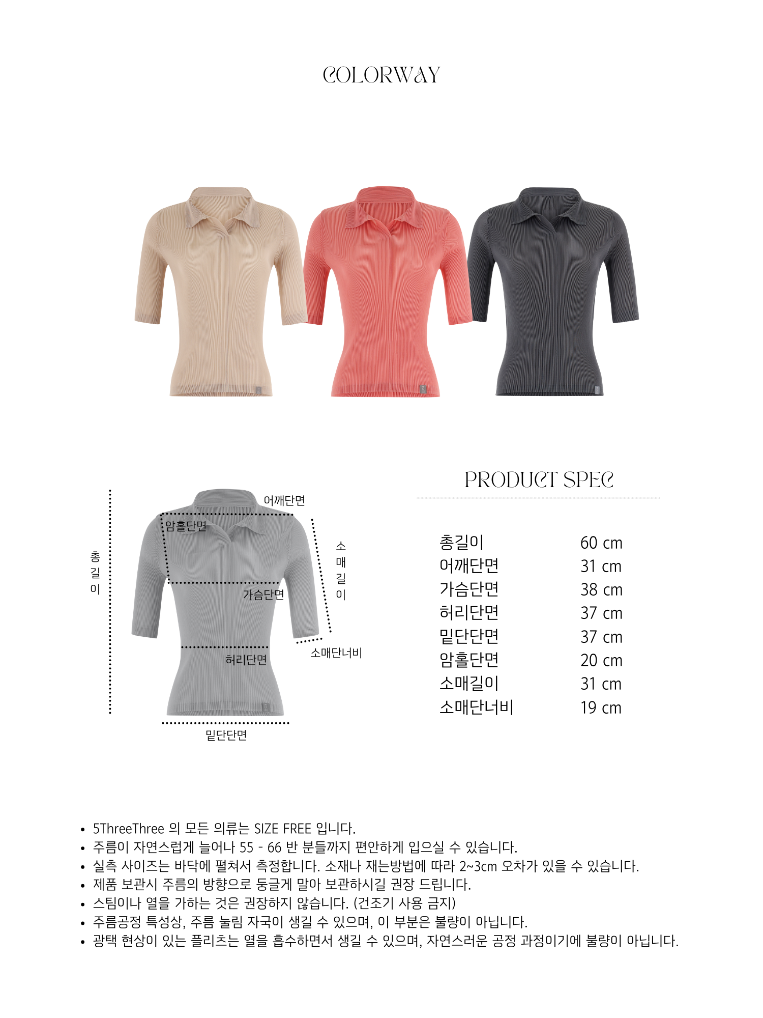 Fit Advise 5threethree 의 모든 의류는 Free Size 입니다. 55 - 66 반 분들까지 편안하게 입으실 수 있습니다. 보다 정확한 치수는 Product Spec을 확인 부탁드리겠습니다.