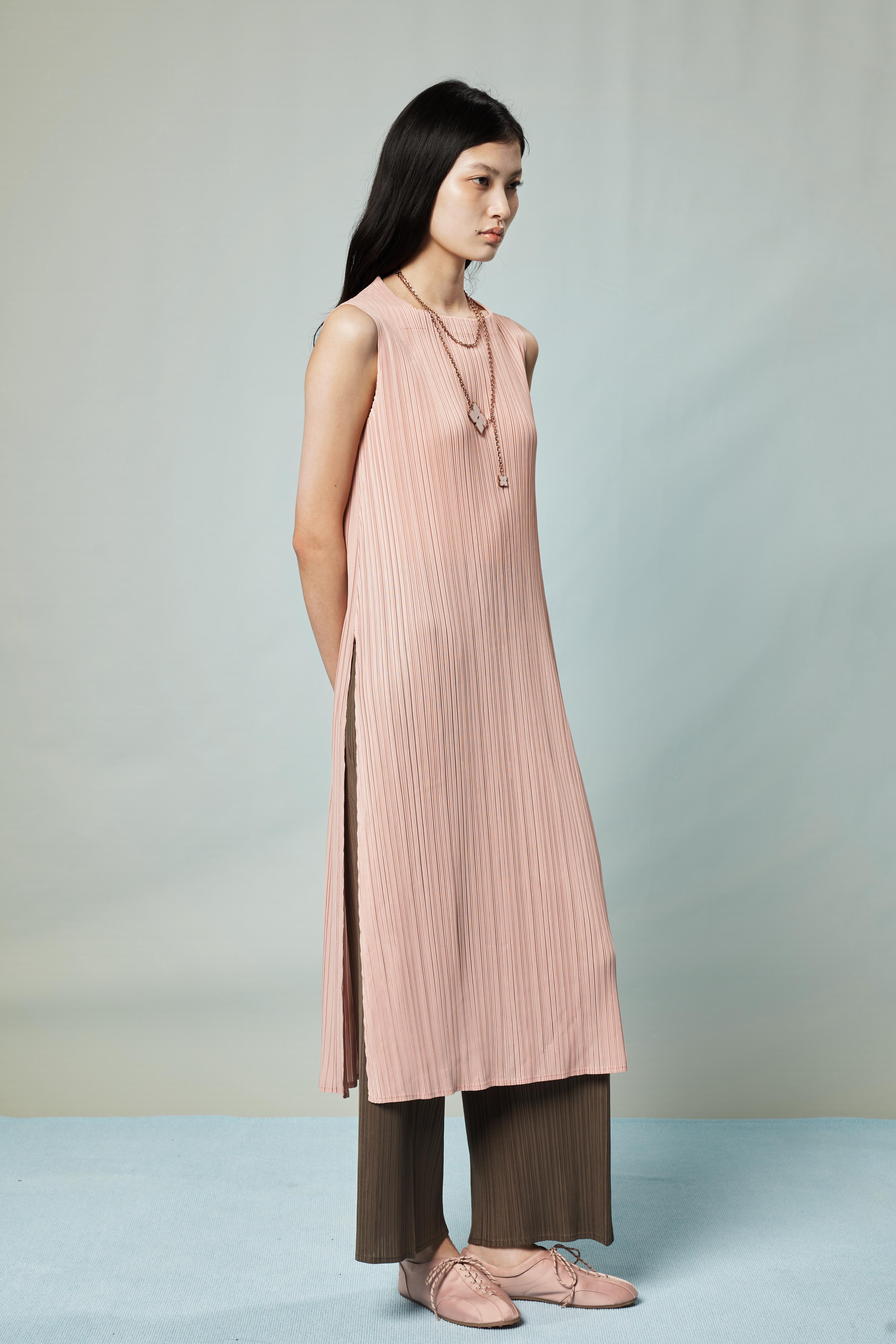 “심플한 라인에 사이드 트임 디테일을 더해 길고 유려한 실루엣이 돋보이는 롱 탑입니다.”